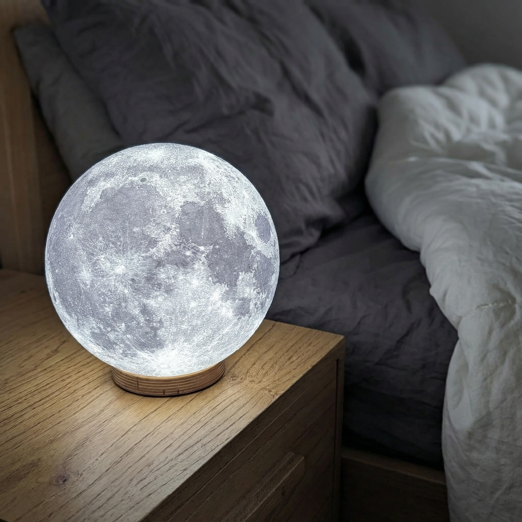 Imaginá apagar las luces y ver cómo la superficie lunar se ilumina con un resplandor suave que resalta cada cráter y mar. Esta lámpara transforma livings, dormitorios y escritorios al instante, convirtiéndose en ese regalo sorpresa que deja a cualquiera sin palabras.